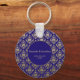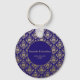 Chaveiro de Casamento com Púrpura Violeta Moderna e Padrão Dourado, com escrevendo branco sobre fundo violeta roxo com padrão dourado por toda parte, essas chaveiros chic podem ser personalizadas com seus nomes. O toque perfeito para casamentos, chás de panela, chás de fraldas, graduações e aniversários. Projetado pela RevivaDesigns