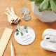 Este elegante chaveiro de botão botânico floral apresenta uma borda de verde pintado manualmente com flores brancas de magnólia. Personalize com os nomes da noiva e do noivo e a data do casamento. Faz um presente de favor único. Parabéns pelo seu casamento! Desenhada por Susan Coffey.