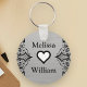 Chaveiro Casamento Floral de Nomes de Noivas de Cinza Negra