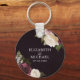 Estes românticos e escuros chaveiros de casamento floral fazem favores de casamento excelentes, com os nomes da noiva e noiva e data de casamento, e um fundo de pelúcia, quase negro, fundo. Encontre o resto do pacote de convites de casamento e mais produtos correspondentes na coleção, ou envie-me através do Zazzle Chat para obter produtos adicionais ou ajustes de design.