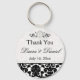 Este casamento tema damasco preto-e-branco favorece o chaveiro corresponde ao convite de casamento e outros itens mostrados abaixo. Você pode ampliá-lo para 2,25 pol de diâmetro ou mudá-lo para uma forma redonda ou quadrada premium. Se você precisar de outros itens, envie um e-mail para niteowlstudio@gmail.com com sua solicitação.
