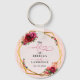 Chaveiro Casamento vermelho rosa floral e dourado falso