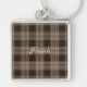 Bonita, castanha masculina e chaveiro de xadrez bege. Adicione seu nome para personalizar. Bom presente para ele!