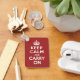 Versão moderna do poster clássico "Manter Calmo e Continuar" castanho-vermelho e branco.