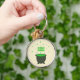 Este chaveiro de diversão apresenta uma imagem gráfica de um caldeirão de cinza. O caldeirão é cheio ao topo com uma poção verde feita por uma bruxa. A poção está borbulhando do caldeirão e formou a palavra "bolha", que aparece duas vezes acima da respiração venenosa.