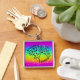 Uma corrente chave superior com uma cabeça de cavalo do Appaloosa do leopardo em um fundo do arco-íris.