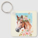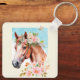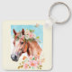 Belo cavalo aquarela e flores chaveiro de arte. Um presente maravilhoso para alguém que ama cavalos.
