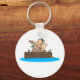 Um homem da caverna numa canoa a remar. Esta design parece realmente eficaz nestes Chaveiro