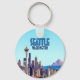 Mostre o majestoso centro Seattle incluindo a Agulha Espacial e o pano de fundo do Monte Rainier no Estado de Washington, EUA em uma chaveiro como recordação de um dos maiores locais da América!