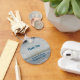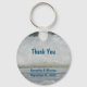 Crie um favor único para seu casamento na praia com este chaveiro barato. O anel-chave apresenta uma foto de uma onda em direção à costa. "Obrigado", os nomes da noiva e do noivo, e a data do casamento pode ser rapidamente personalizada. A parte traseira apresenta uma cor azul sólida com espaço para fotos ou uma mensagem adicional.