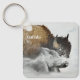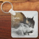 Chaveiro é mostrado com uma impressão de foto de um búfalo selvagem na neve em Yellowstone. Personalize este item ou comprar como está. Imagem do stock