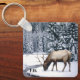 Chaveiro é mostrado com uma impressão de foto de um alce selvagem em Yellowstone. Personalize este item ou comprar como está. Imagem do stock