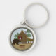 Chaveiro personalizado para campistas, caçadores, pescadores, entusiastas da canoa e fora homens. Cabana rústica de madeira nas madeiras com animais selvagens no fundo da camuflagem. Personalize-o com seu próprio nome e a outra informação pessoal.