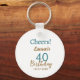 Chaveiro Cheers 40th birthday name date brown turquoise sim
