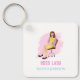 a design da frente mostra uma imagem digitalmente pintada de uma dama com texto de dama chefe e nome personalizável. esta chaveiro única e bonita será perfeita para um presente para qualquer dama.