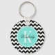 Chaveiro Chevron preto e branco com monograma de turquesa