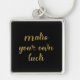 Chaveiro chic te lembrando para FAZER SUA PRÓPRIA SORTE! Dourado script de brilho num fundo preto.
