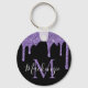 Chaveiro Chic Glitter Roxo com Efeito de Gotas Brilho Monog
