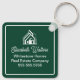 This professional realtor keychain is custom made with your real estate company name under the modern cursive script and house image. This chic hunter green realty business promotional items feature a house logo image for home builder or realty agent company marketing.