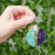 Chaveiro Chic iridescent purple blue faux glitter monogram