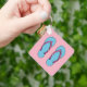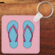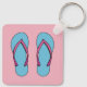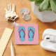 Uma ilustração de um par de chinelos de praia cor-de-rosa e azuis. É verão! O vamos faz uma pausa e diverte-te debaixo do sol. Você não está animado em preparar suas coisas para as férias? Não esqueça seus chinelos.
