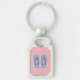 Uma ilustração de um par de chinelos de praia cor-de-rosa e azuis. É verão! O vamos faz uma pausa e diverte-te debaixo do sol. Você não está animado em preparar suas coisas para as férias? Não esqueça seus chinelos.