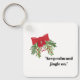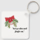 A clean, minimalist holiday design featuring a festive sprig of mistletoe with red berries and a large red bow, accompanied by the quote "Keep calm and jingle on."