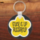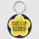 Chupa-o Engraçado, uma motivação engraçada, dizendo em fonte divertida sobre fundo de flores amarelas. Chaveiro humorístico para um presente ou como um lembrete para você mesmo!