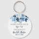 Pulseira chave floral em azul naval aquarela para chá de panela. Perfeita para o seu chá e outros eventos especiais e fácil de personalizar clicando no botão "Personalizar". Com flores modernas e letra cursiva.
