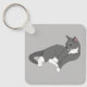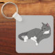 Chaveiro Cinza e Gato de Tuxedo Branco