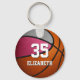 Este fofo chaveiro de basquete apresenta a imagem realista de uma bola de basquete que tem dois painéis coloridos — um rosa e uma cinza — facilmente personalizam com o nome do jogador & número de camisa - por katz_d_zynes