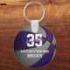 Este legal chaveiro do tema de basquete apresenta a imagem de uma bola de basquete realista com painéis coloridos roxos e cinzas alternados - facilmente personalizados com o nome da escola, o nome do mascote e o nome do jogador & número de camisa - por katz_d_zynes