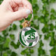 Este chaveiro de metal com tema de vôlei apresenta a imagem realista de um vôlei verde, cinza e branco, sobre o qual você pode personalizar o nome do jogador & jersey number em uma letra estilo varsity - por katz_d_zynes