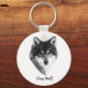 Retrato animal Canis lupus em preto e branco. Chaveiro de botão redondo impressionante para qualquer um. Você também pode transferir este design para outro produto de sua escolha, basta usar uma opção à direita desta descrição.