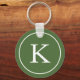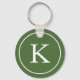 Cadeia de teclas de círculo com um círculo verde da floresta e um monograma inicial.