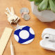 Este padrão geométrico em negrito apresenta um círculo branco no centro e dois círculos brancos nas bordas de um fundo azul vibrante. Se quiser adicionar um monograma ou imagem ao design, clique no botão "Personalizar!". Imagem criada digitalmente. Copyright © 2011 Claire E. Skinner. Todos os direitos reservados.