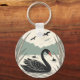 elegância carregar em todo lugar com esta chaveiro com um detalhado cisne negro deslizando em águas calmas. Ledos estilizados, cisnes menores, e uma linha de trilha muda completam esta design inspirada na safra, perfeita para amantes de pássaros e para aqueles que apreciam o trabalho de arte clássico.