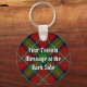 Crachá da crista Clan Boyd rodeado por uma correia e fivela sobre fundo tartano. Texto personalizado de ambos os lados.