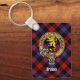 Crachá da crista Clan Brown rodeado por uma correia e fivela sobre fundo tartano. Texto personalizado de ambos os lados.