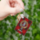 Chaveiro Clan MacQueen Crest sobre Tartan