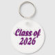 Key chain with Class of 2026 in 3D purple text. Round and square key chains available in several sizes.