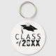 Modern Class of Typography Black Graduation Hat keychain. Trendy black typography with black graduation hat. Customize with the year number. Make a great gift and keepsake for a graduate.
