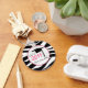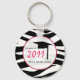 Um chaveiro com um design de fundo de uma impressão zebra e cor-de-rosa. Texto "Classe de 2011" com quadro cor-de-rosa dentro de ilustração do boné de formatura preto. Personalize com seu nome.
