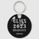 Chaveiro comemorativo personalizado de graduação em cores personalizado com nome, escola ou outro texto e CLASS OF YEAR FORMANDO em tipografia decorativa retrorativa. Todo o texto, o gráfico do boné de formatura e as cores de fundo podem ser alterados para as cores escolares ou para uma cor favorita (mostrada em branco a preto). ASSISTÊNCIA: Para obter ajuda com a modificação ou personalização do design, alteração de cor, redimensionamento, transferência do design para outro produto ou, se você quiser coordenar itens, entre em contato com o designer ANTES DE PEDIR através da guia MENSAGEM de bate-papo Zazzle abaixo ou envie um email para makeitaboutyoustore@gmail.com.