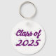 Cadeia de chaves com Classe 2025 em texto roxo 3D. Correntes de chave redondas e quadradas disponíveis em vários tamanhos.