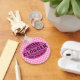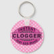 "Clogger Instantâneo: Apenas Adicione Música." Este chaveiro bonitinho para dançarinos de entupimento apresenta uma faixa em forma oval em tons de rosa, roxo e branco com notas e listras de música. O fundo é rosa claro com bolinhas brancas. É uma corrente bonito para o fã de dança do entupimento. Veja variações e mais designs de entupimento originais no nosso link de compro ClogDance!