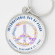 Celebrar o Dia Internacional da Paz em 21 de setembro com esta chaveiro, que mostra uma nuvem colorida de crachá de palavra em forma de paz com a palavra pela paz estilhaçada em diferentes fontes e em muitas línguas. Design © W.H. Sim. Mais informações em zazzle.com/expressionsoccasions