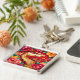 Efeito colorido Cobra em 3D (estilo Origami) rodeado por peônias + "Ano do Cobra". Design em chaveiro de grande metal quadrado. Cartão de boas-vindas, cartão postal de feriado (e adesivo em breve). Perfeito para o Ano Novo Chinês da Cobra de 2025.