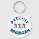 O design de tipografia apresenta "Michigan" e "Detroit" em texto curvo com prefixo do código de área 313 para a área de Detroit, em fontes de aparência grunge/angustiada.