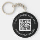 Chaveiros redondos e pretos com o seu código QR e texto personalizado. Alterar fontes e cores, mover e redimensionar elementos com a ferramenta design.
